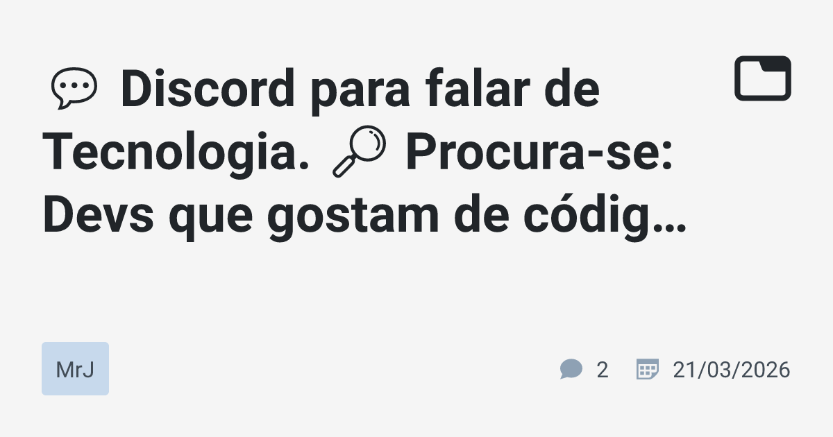 💬 Discord para falar de Tecnologia. 🔎 Procura-se: Devs que gostam de código, arquitetura, filosofia e discutir ideias.