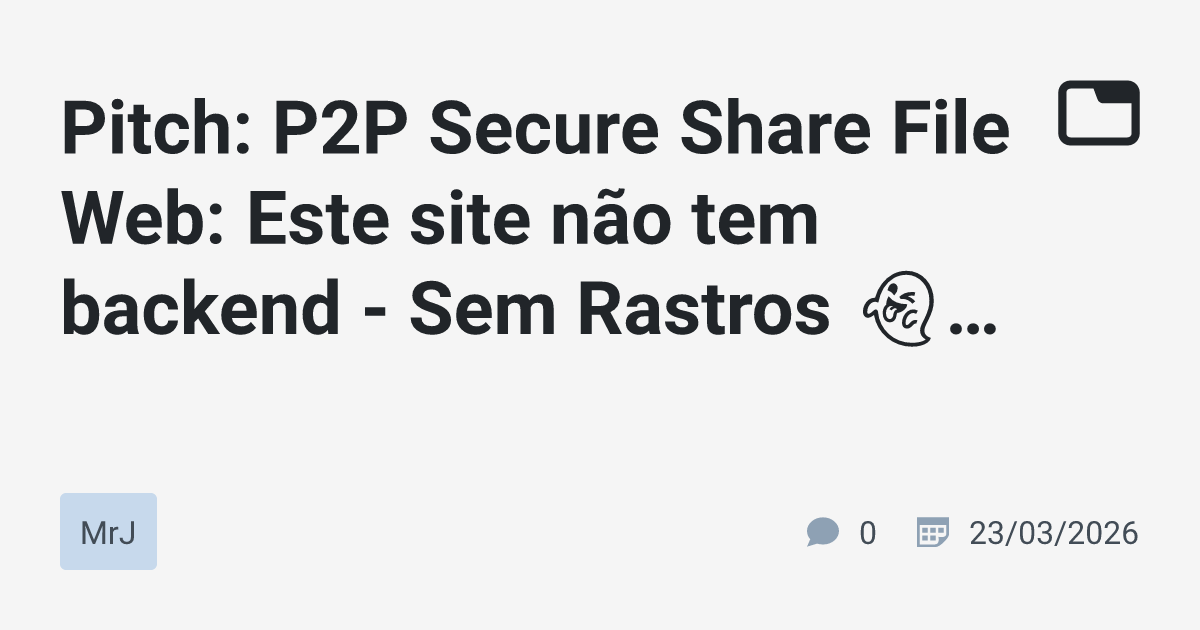 P2P Secure Share File Web: Este site não tem backend - Sem Rastros 👻🔒 100% Privado - Privacidade Inquebrável 🔒🛡️ Zero-Knowledge - OpenSource